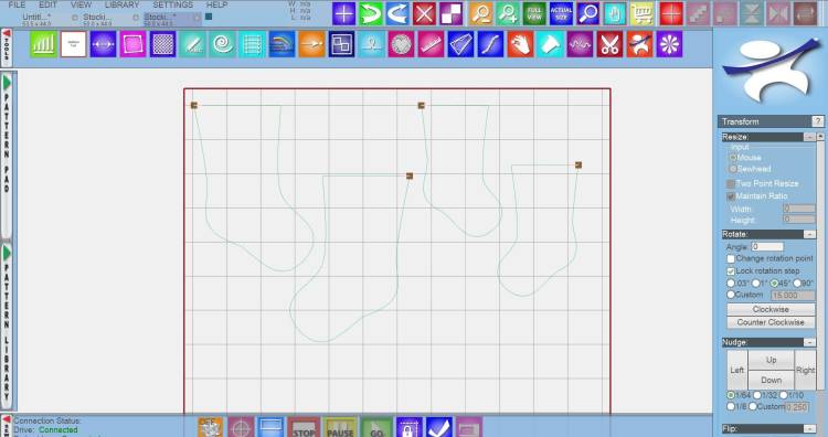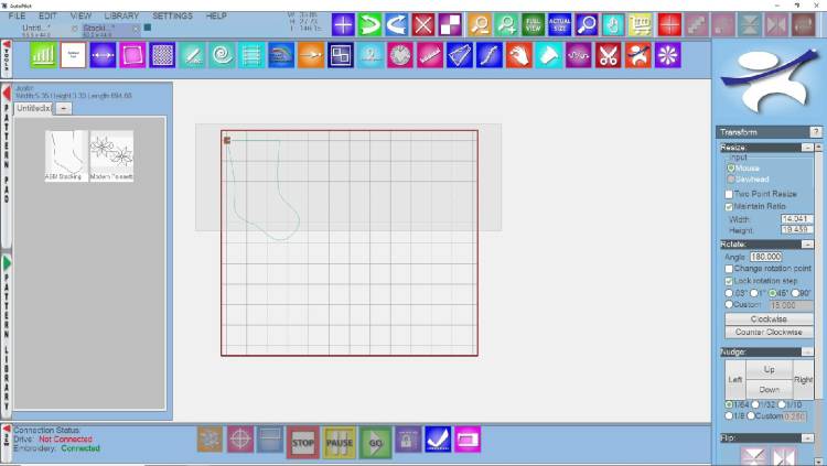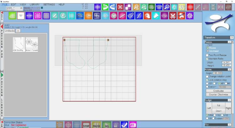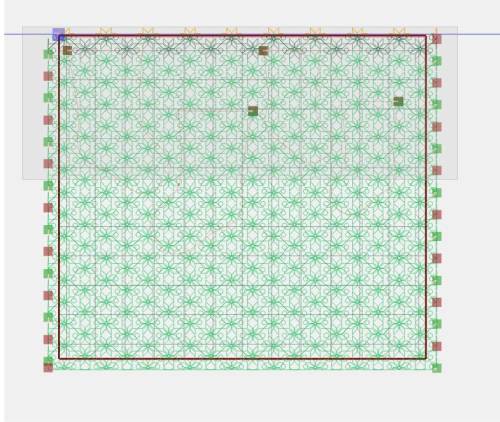 Trim excess pattern as necessary using the Trim tool (e.g., to avoid quilting onto canvas leaders or Red Snappers).