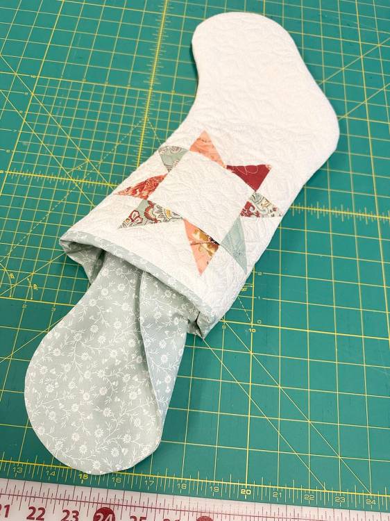 Turn the stocking right side out and close the liner opening with your preferred method.