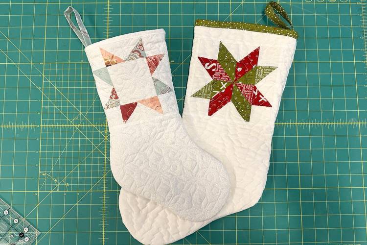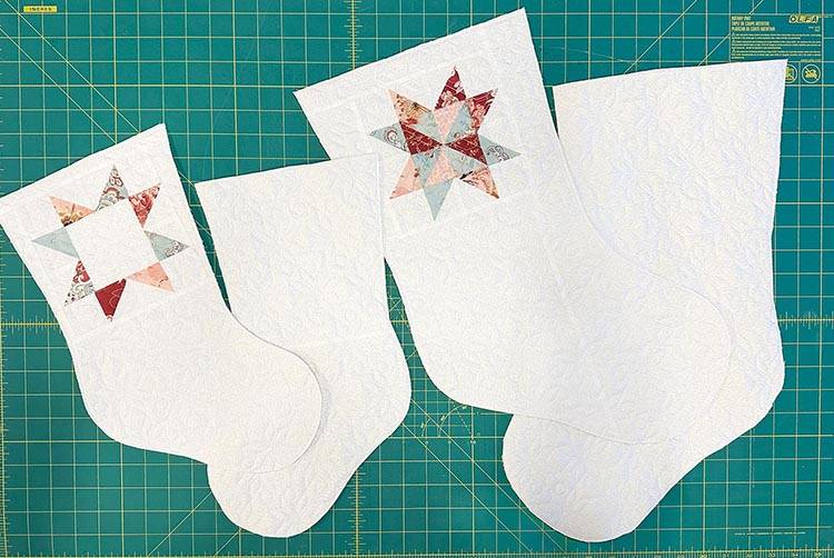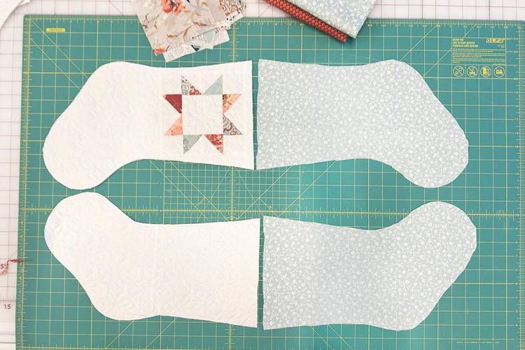 Create your own quilt top or repurpose an old quilt. I added a fun quilt block to the upper section of my stockings and used muslin for the backing since it won't be visible after assembly.