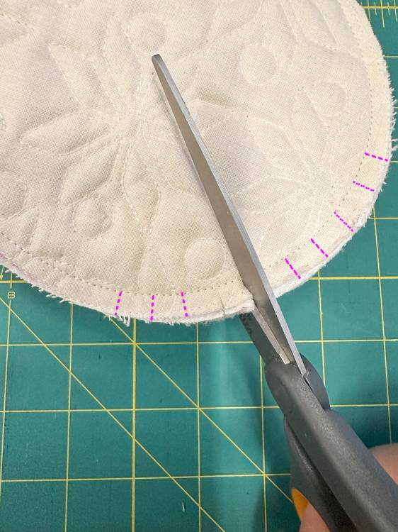 Clip the seam allowance along the curved edges (toe and heel) without cutting into the seam. This ensures smooth curves when turned.