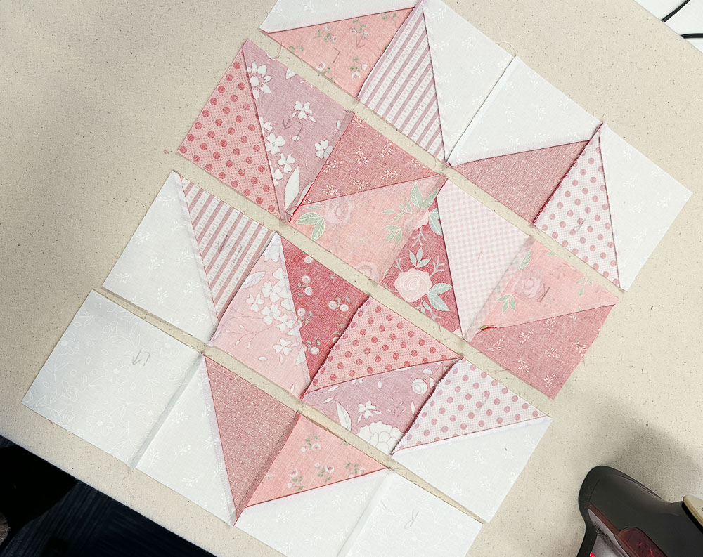 Sew together each heart block, starting with sewing pairs together.