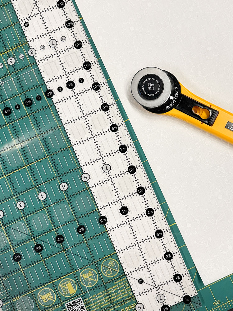 Supplies: • Spray Starch • Rotary cutter / mat • Ruler • Iron / Ironing board • Marking tool Pins |