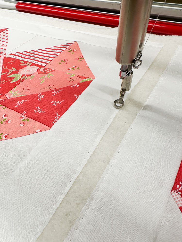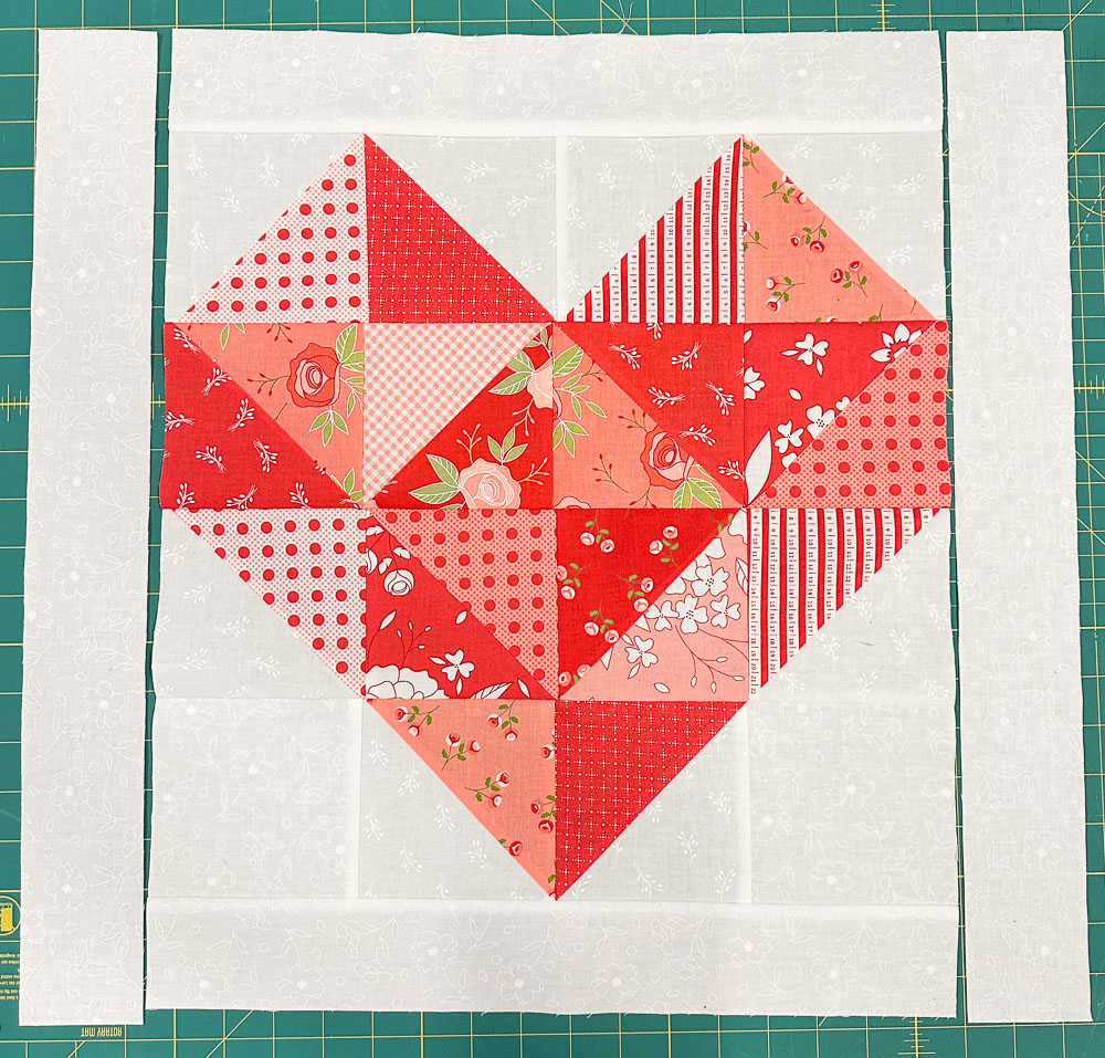 Next attach two Fabric B 20 ½" strips to each side of the heart block.