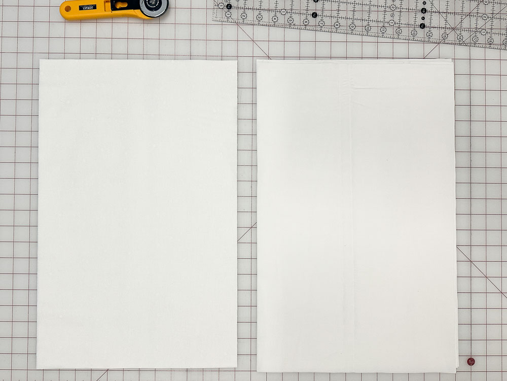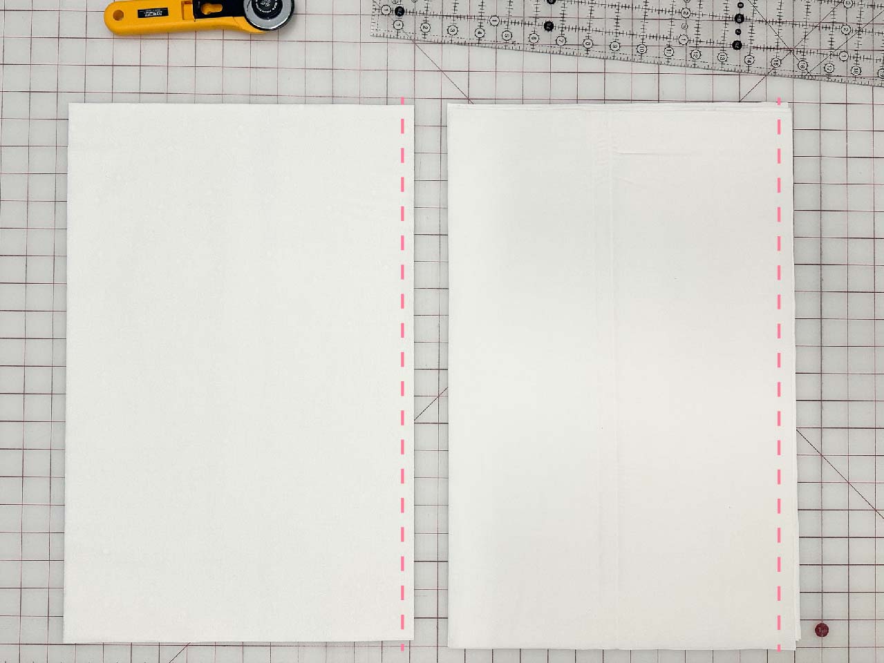 Pair one background fabric rectangle with one liner fabric rectangle with the right sides together.