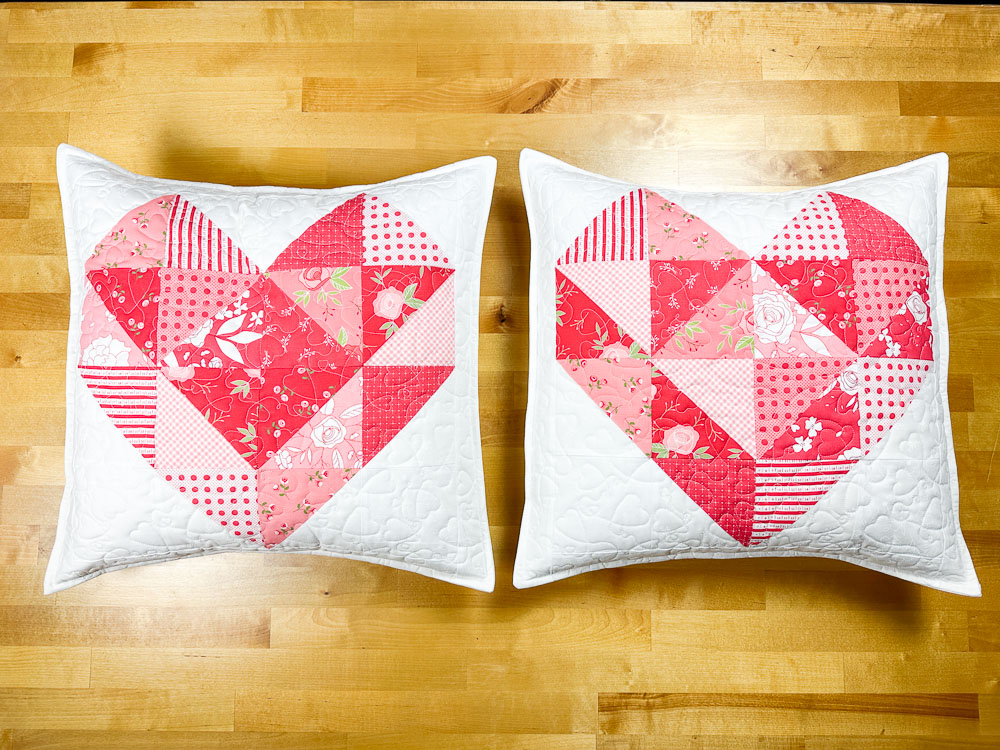 Your Heart Envelope pillow fronts are now complete and ready to quilt! I choose to do an edge to edge design on my pillows.